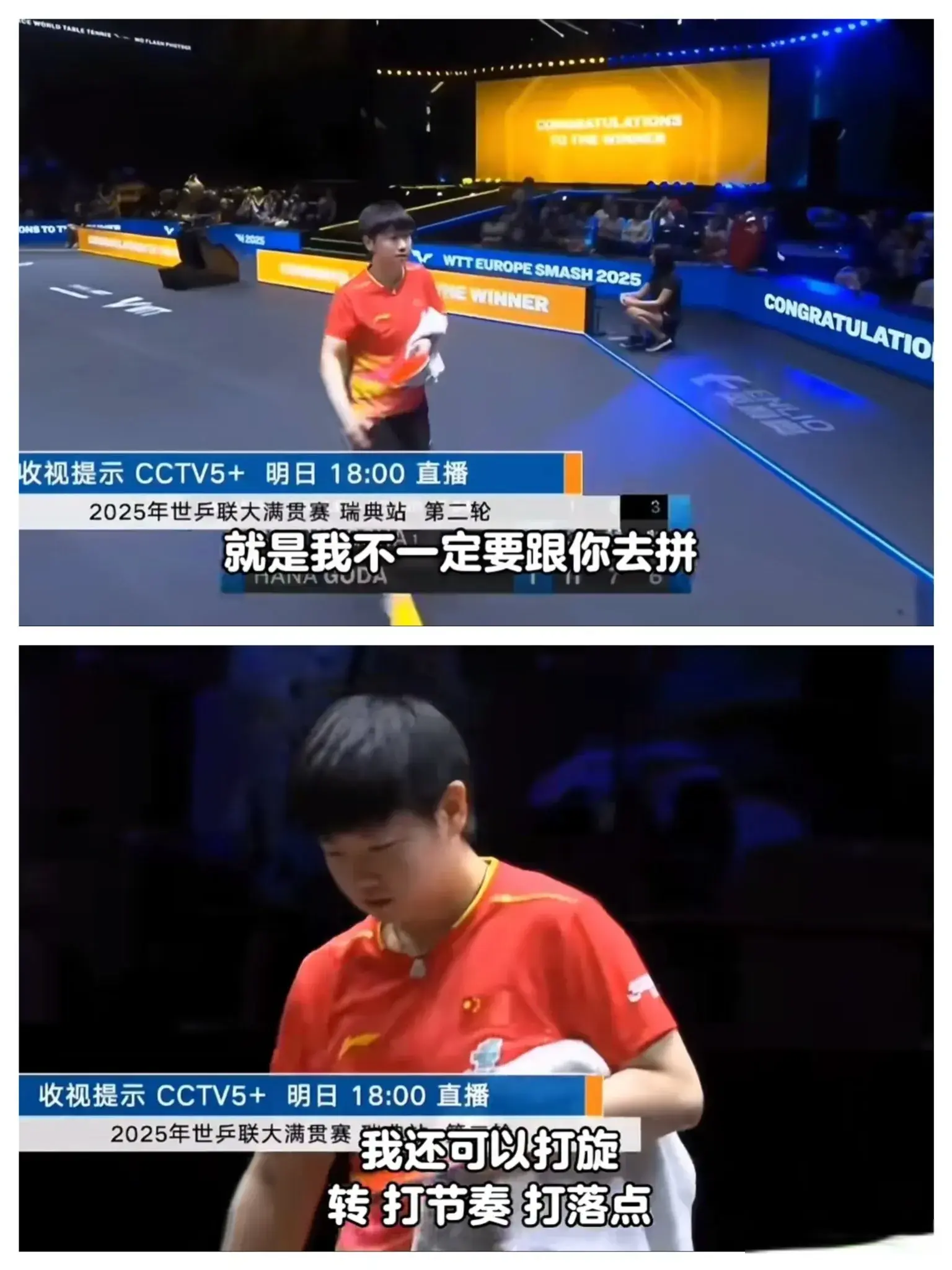 原来小女孩一直在调整中世纪汇通,这次到瑞典打球,这几天看到她心情很不错,希望她能够快乐打球,不管打到第几轮,你依然是很棒的孙颖莎!
