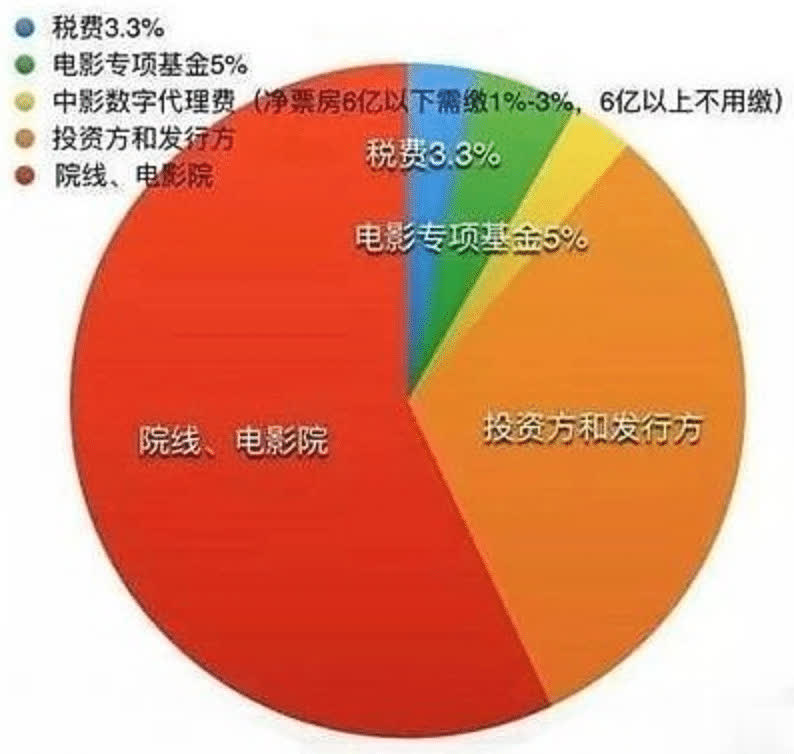 其中院线约拿走一半,制片/出品方和发行方分享另一半。