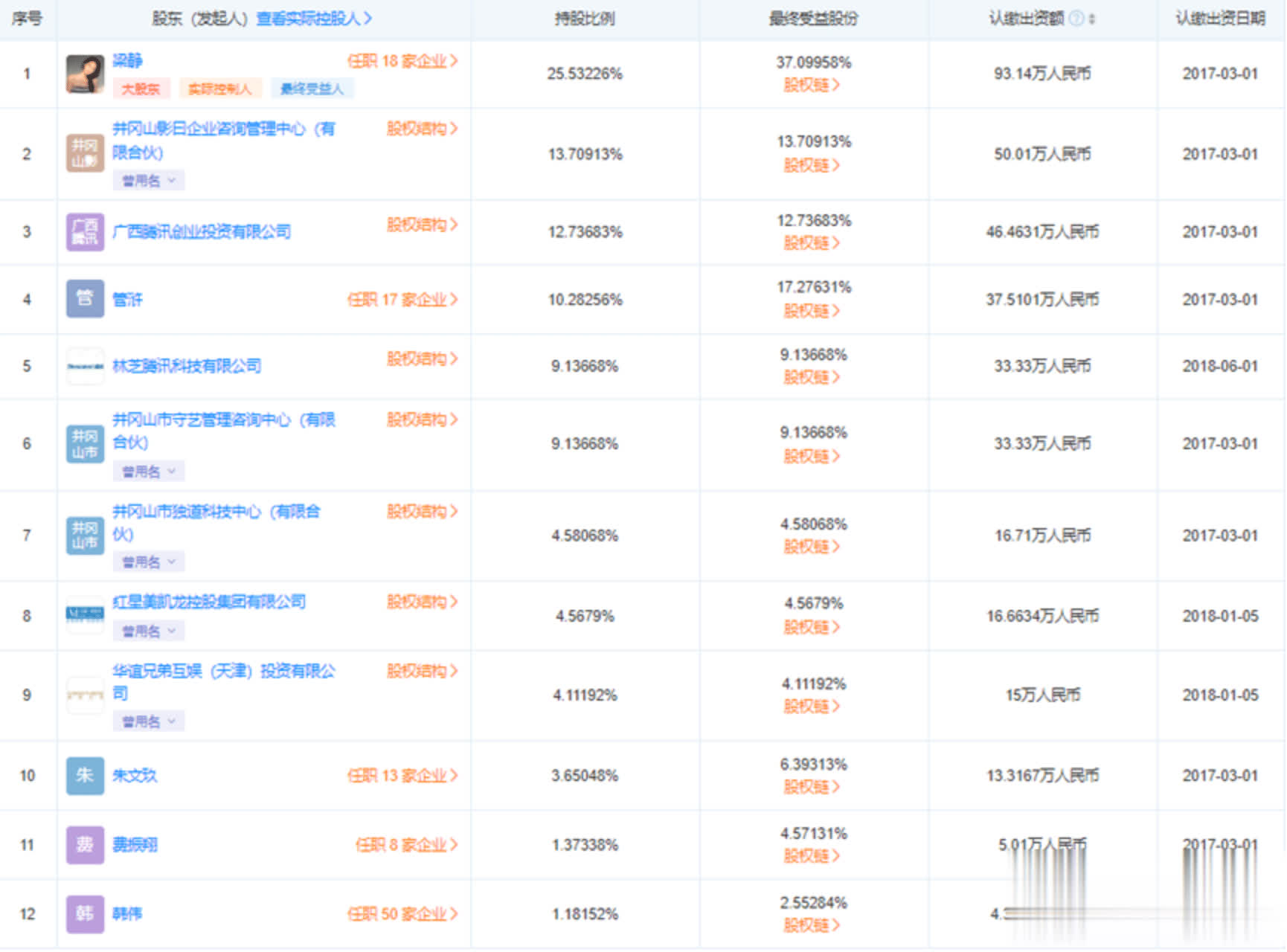 梁静和管虎都是七印象的大股东(排名第四的管浒就是管虎)。